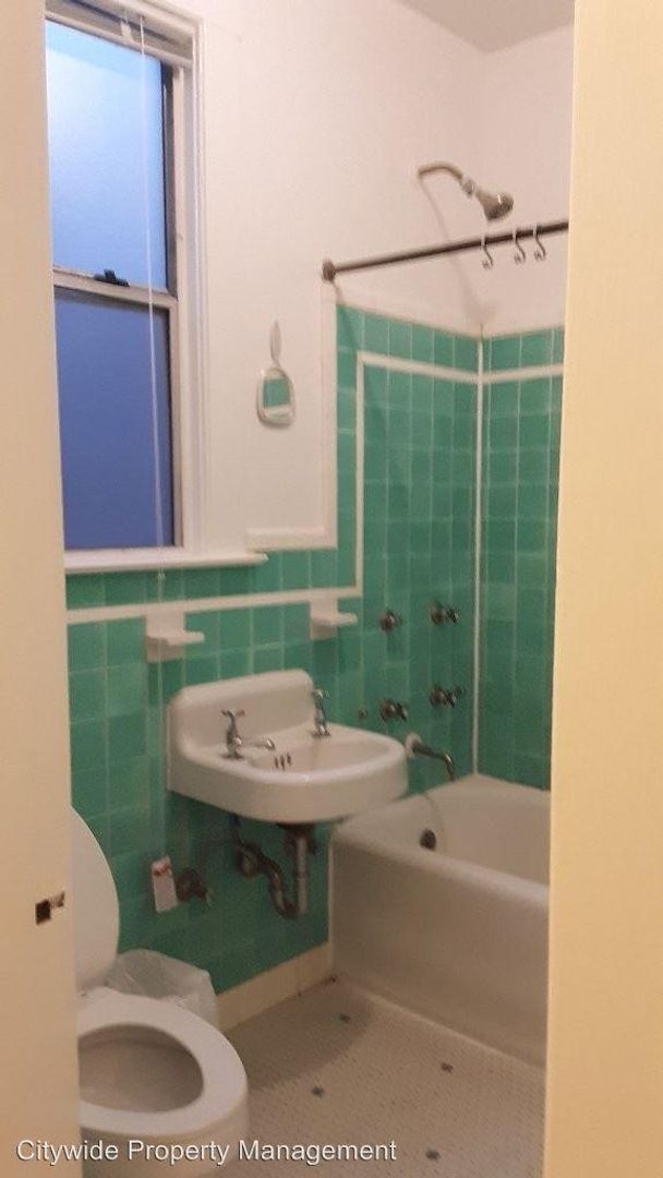 This is a large studio with a dining area, two closets (one large walk-in), bright window with window seat in bedroom area. Spacious bathroom and galley kitchen. Beautiful wood floors.